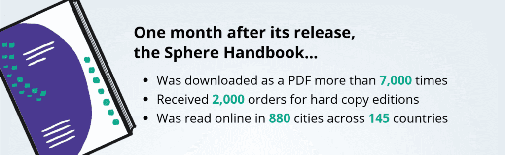 The year ahead promises to be just as eventful and exciting. Our partners around the globe are organising several special events to introduce and share the 2018 Handbook and tools to support its use. Please remember to check the Sphere calendar periodically for updates. And let us know if you are planning any events yourself!
