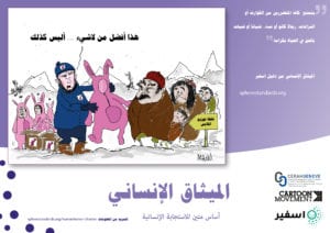 في عام 2014 نشر اسفير سلسلة من الرسومات التوضيحية التي تمثل مبادئ الميثاق الإنساني. وكانت تهدف الرسوم الكرتونية إلى زيادة الوعي والفهم بالميثاق بين الممارسين في المجال الإنساني والمجتمعات المتضررة.