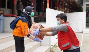 Indonesian Red Cross volunteers deliver hygiene kits in Paramadina as part of the COVID-19 response in March 2020. Photo: Indonesian Red Cross