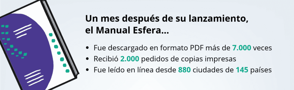 El próximo año promete ser igual de emocionante y rico en acontecimientos. Nuestros socios en todo el mundo están organizando varios eventos especiales para presentar y compartir el Manual 2018 y herramientas para apoyar su uso. Recuerde consultar el Calendario Esfera de forma periódica para ver las actualizaciones. Y, por supuesto, háganos saber si están planificando algún evento.