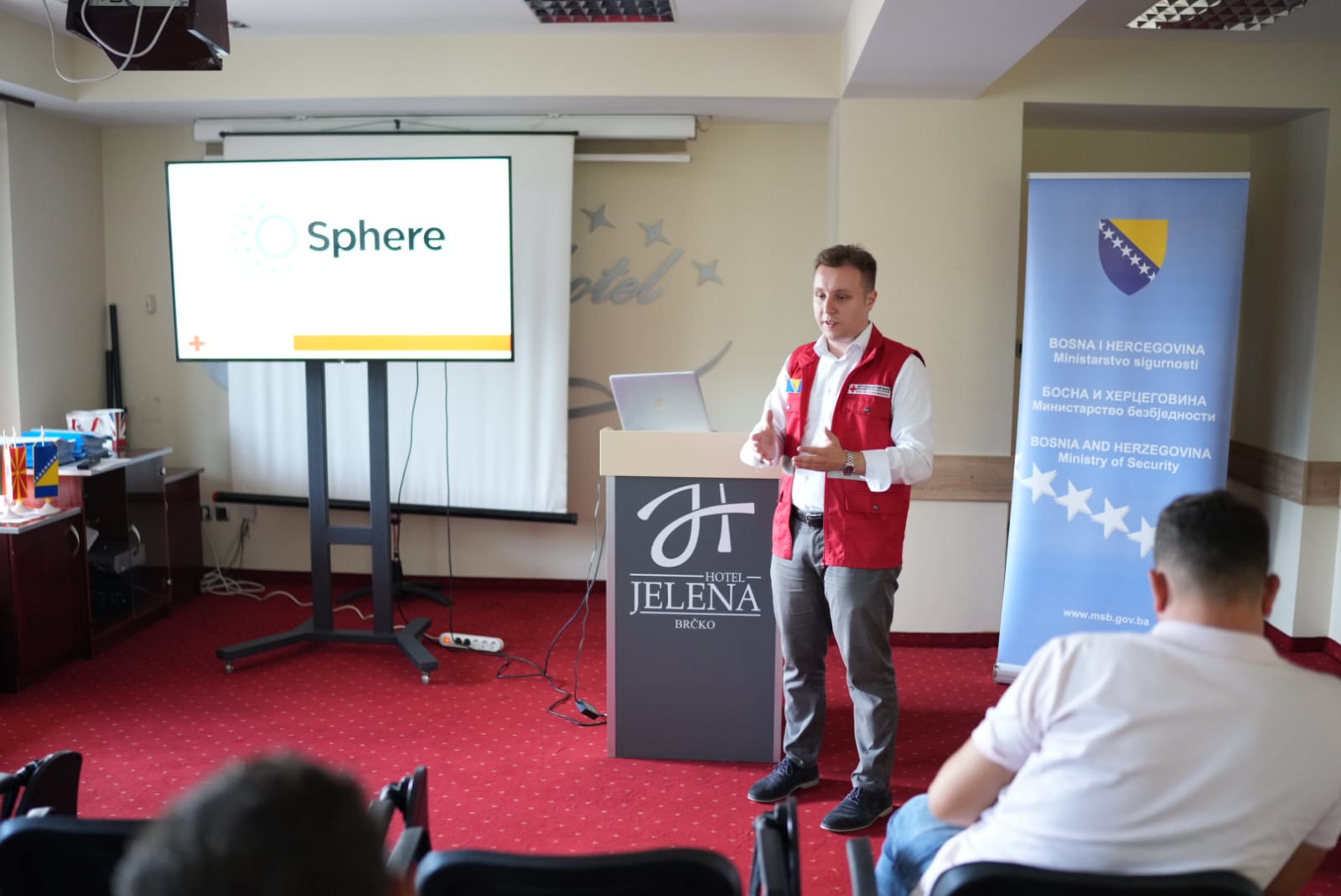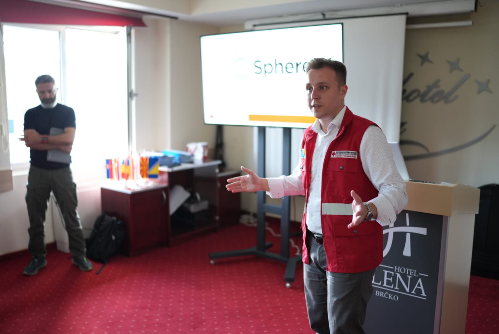 Haris Magrdžija, Migration Coordinator for the Red Cross Society of Bosnia and Herzegovina presented Sphere to participants.