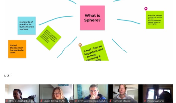 Half-day online interactive workshop for KUNO. 16 participants including NGOs from Ethiopia, Mozambique, Afghanistan, South Sudan and the Netherlands.