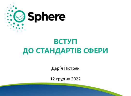 Sphere’s coordinator for Ukraine and Eastern Europe Programme gave a on-line presentation for the Save the Children Ukraine staff and partners about Sphere and its Eastern Europe Programme. Held in Ukrainian, the presentation aimed to reach out to Ukrainian-speaking colleagues and inform them about the Sphere standards and the resources and opportunities Sphere currently provides.