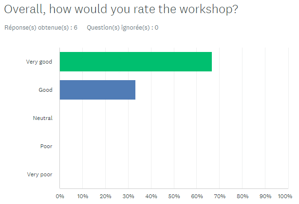 100% of survey respondents agreed that the workshop was «very good» (66%) or «good» (33%).