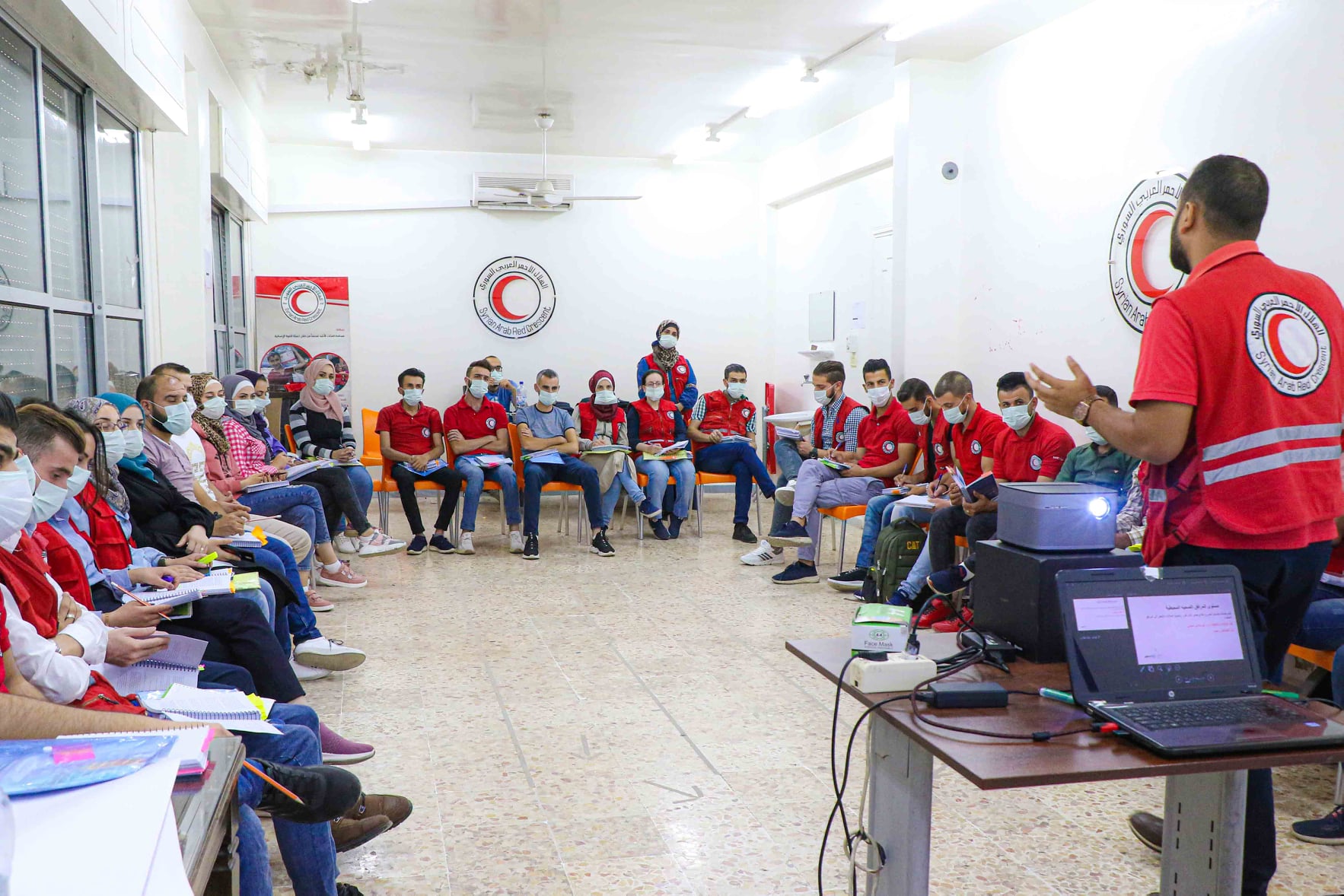 The 58 volunteers, from #Hama and #Idlib branches, received the basic information about health and shelter, water and sanitation, food and nutrition. In addition, they were trained to respond to. similar cases that simulate field response in reality, with the support of the #German_Red_Cross.