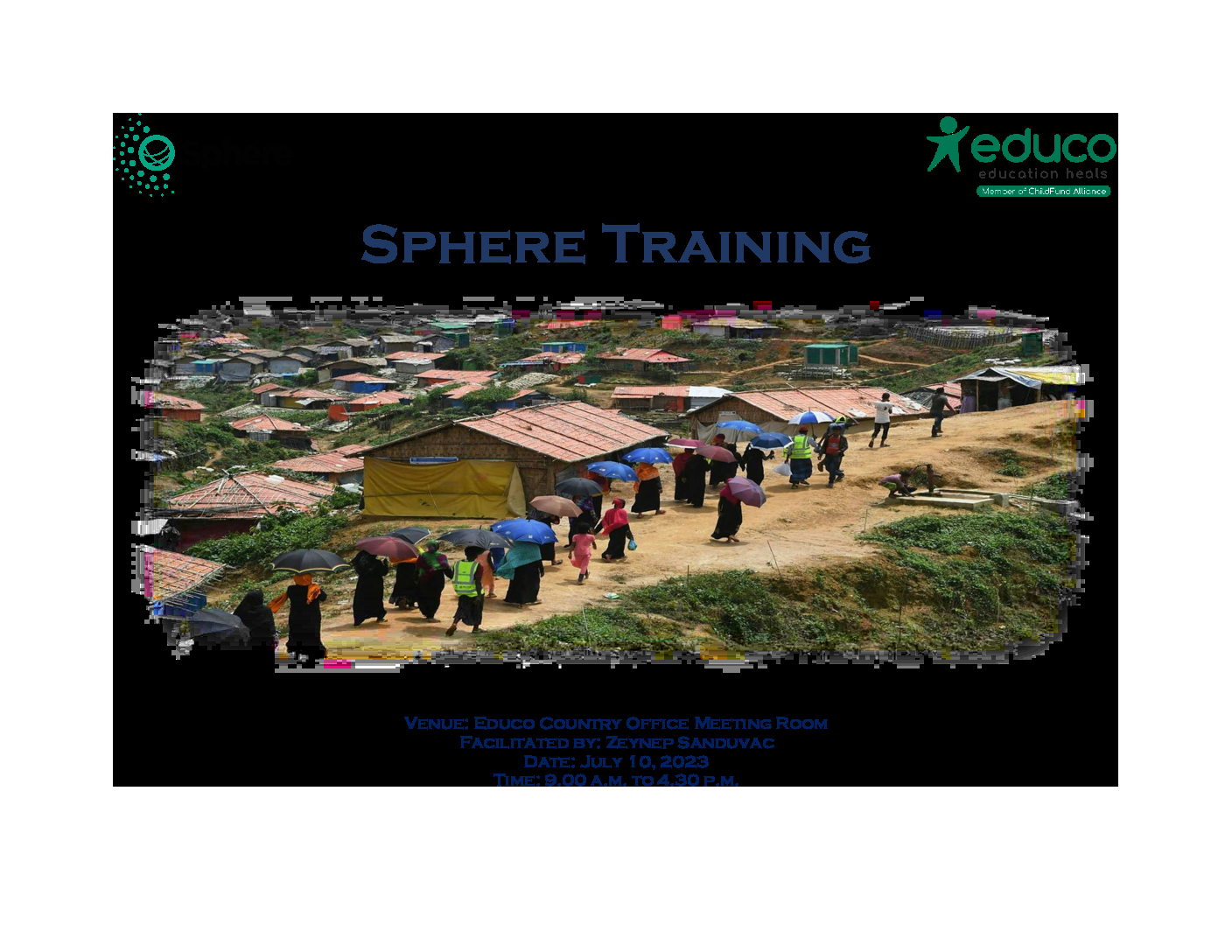 -be able to articulate a common institutional understanding for EDUCO on the Sphere MS approach and needs-based humanitarian aid planning and implementation to promote the well-being of affected people and support them to live a dignified life.