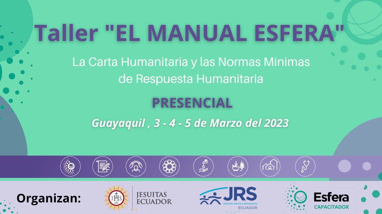 Taller modalidad presencial para técnicos encargados de albergues y acción humanitaria de Servicio Jesuita a Refugiados-Ecuador (SJR-EC) Ecuador. Con la participación de 20 asistentes y 2 entrenadores Esfera.