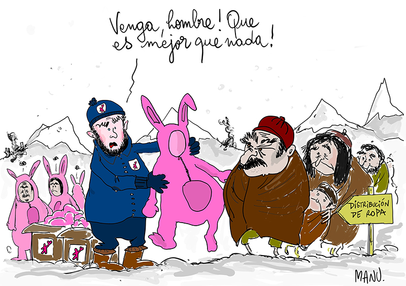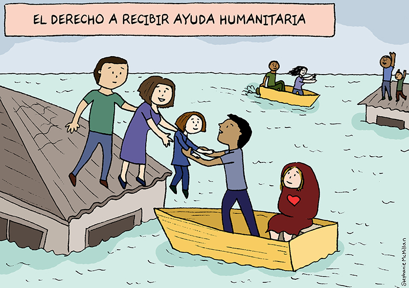 Para producir estas ilustraciones, Esfera se asoció con artistas de Cartoon Movement y con el Centro para la enseñanza y la investigación sobre la acción humanitaria (CERAH).