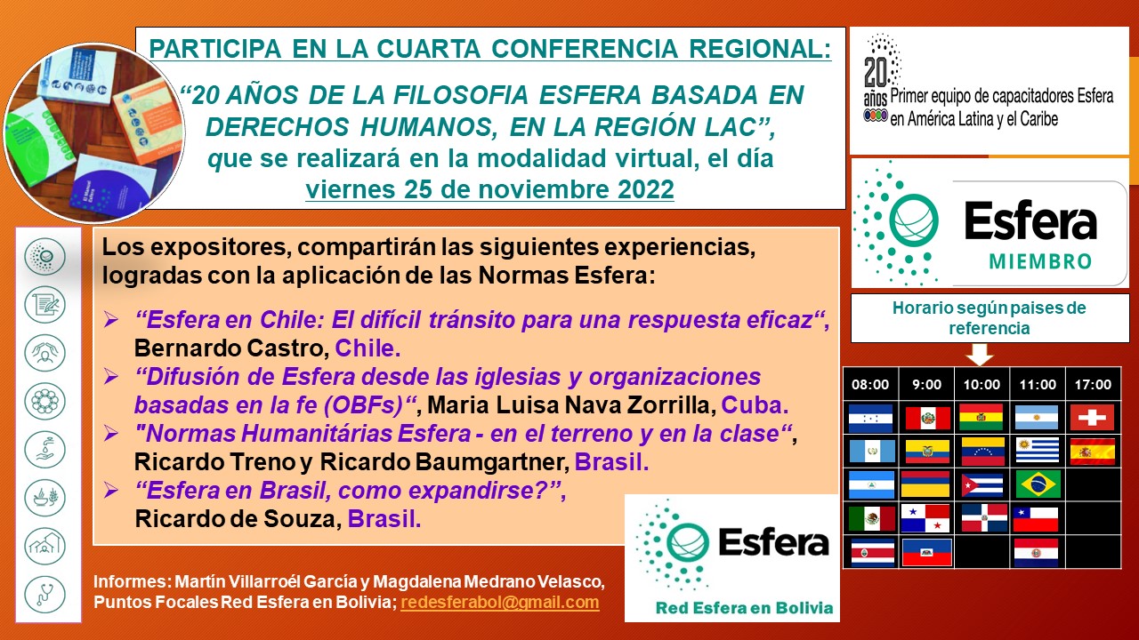 Cuarta Conferencia Regional: 20 Años de la Filosofía Esfera, en la Region de América Latina, Bolivia, 25 November 2022 y El Caribe