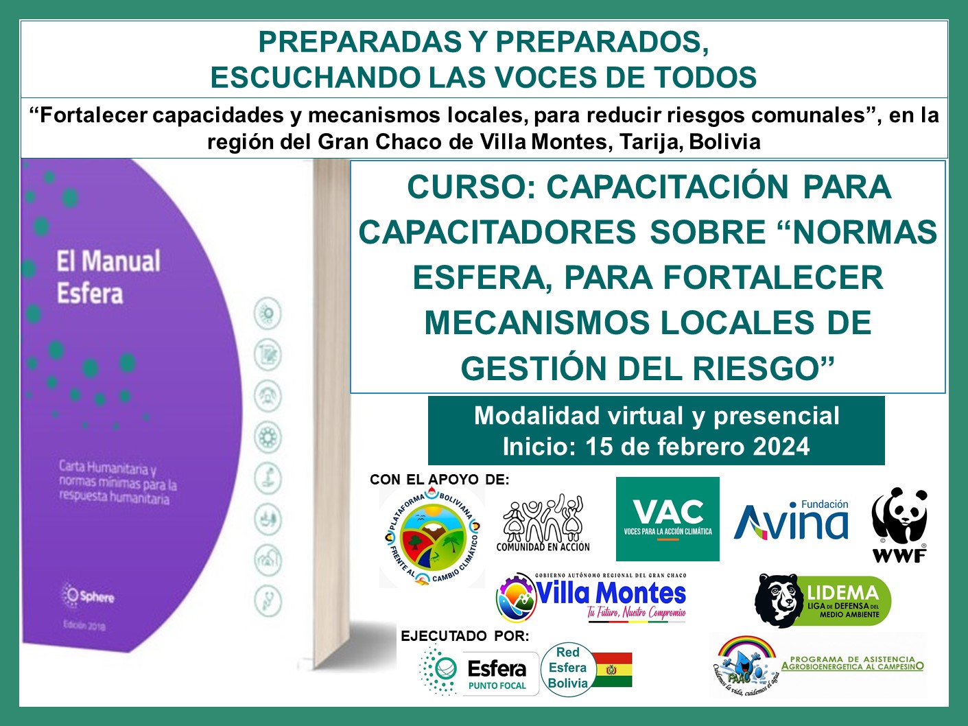 Se aplicara el Módulo Esfera para Autoridades Nacionales en Gestión de Desastres, para fortalecer capacidades y mecanismos locales de gestión del riesgo de desastres.