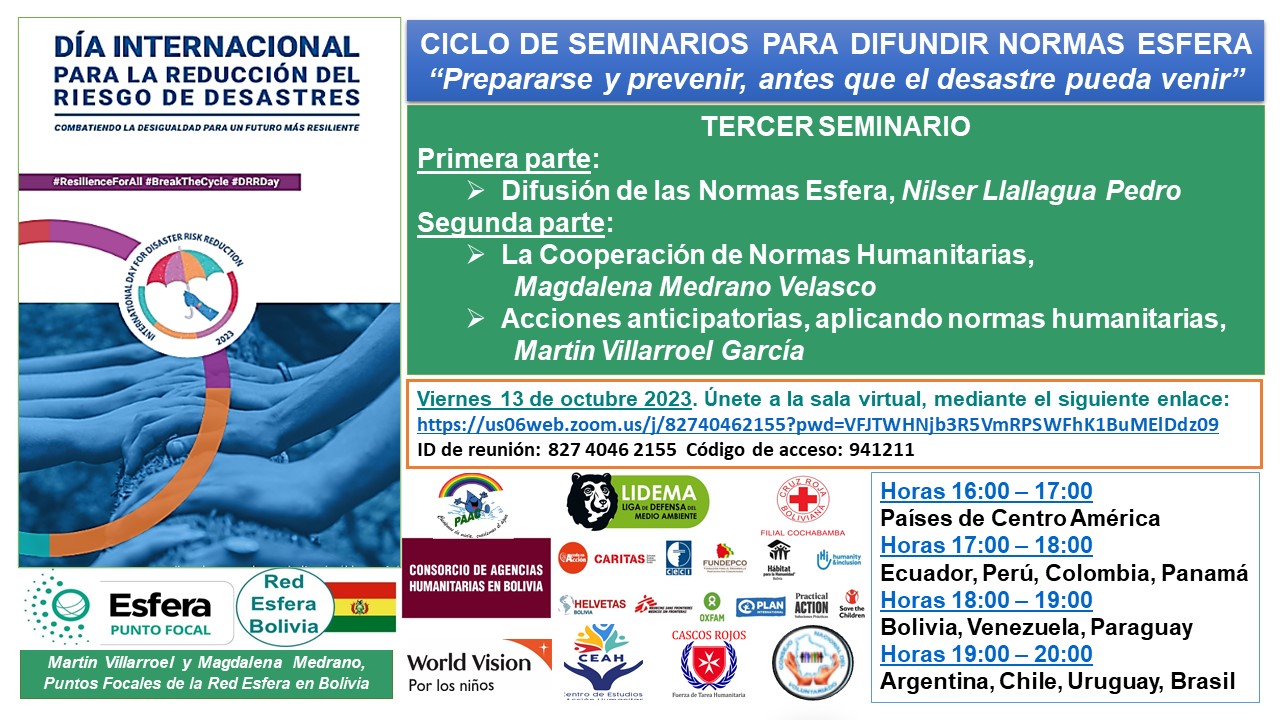 Seminario de difusion de Normas Esfera y Normas humanitarias, online, Bolivia,13 October 2023