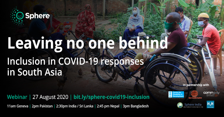 ????????  Sphere is hosting a series of webinars to share good practice and technical guidance on humanitarian standards in the COVID-19 response. This second webinar will explore how community members in South Asia are leading inclusive responses against COVID-19 while making sure that no one is left behind.