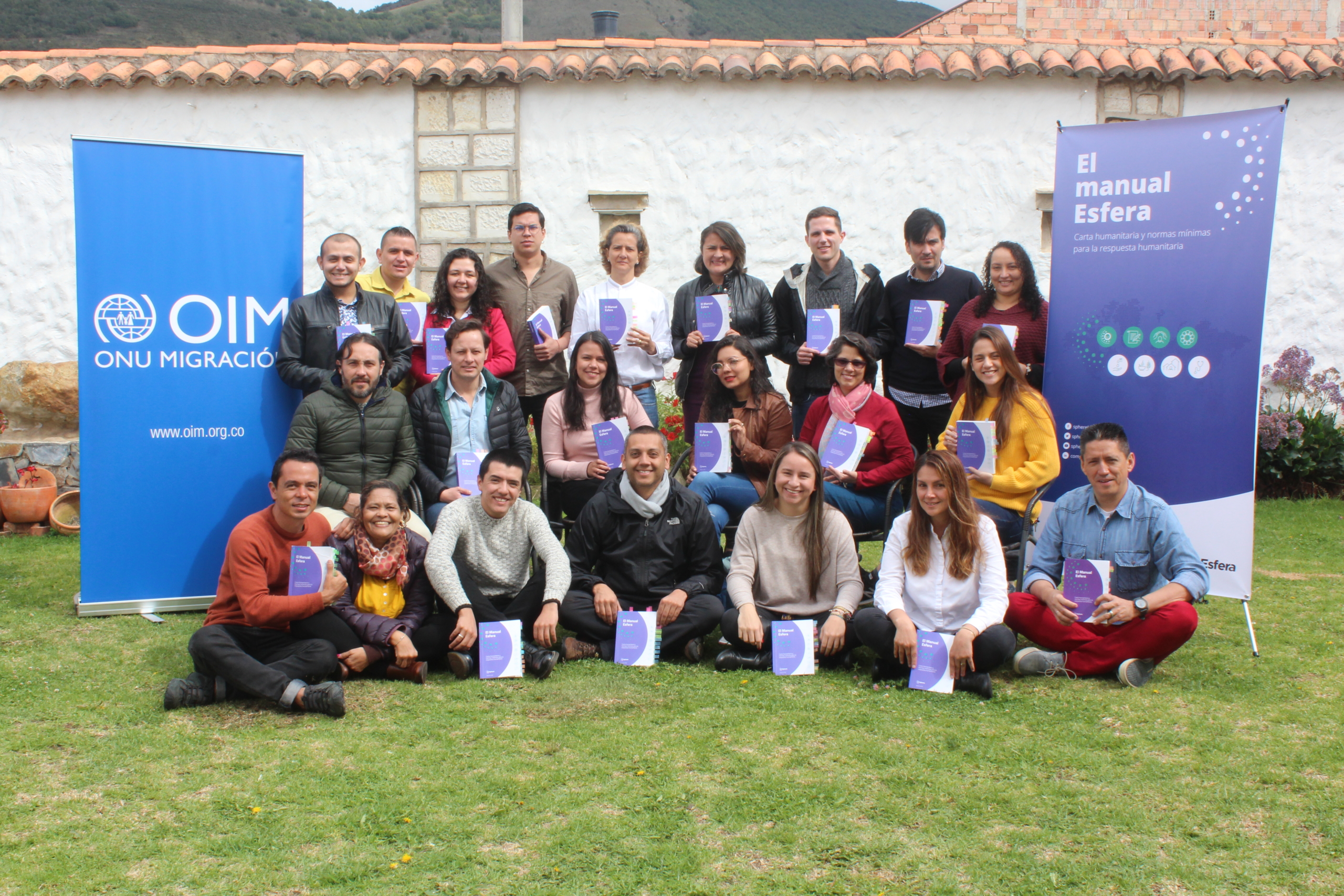 Participantes de distintas organizaciones que intervienen en la Respuesta Humanitaria al Flujo Migratorio Mixto en Colombia a nivel nacional: ACNUR, OIM, FUPAD, IMMAP, Tearfund, Plan Internacional, Servicio Jesuita a Refugiados, OPS/OMS, World Vision, OCHA, Cruz Roja – Seccional Cundinamarca, atendieron la convocatoria para profundizar en el Mensaje de Esfera y el uso del Manual. La capacitación estuvo bajo la responsabilidad de Aydée Marín Pallares, Hugo Sánchez Ardila y Alejandro Castañeda. 18 actores humanitarios fueron certificados como capacitadores en los temas de Esfera. La formación tuvo como objetivo promover que los participantes cumplieran un rol más activo como difusores y defensores de Esfera en sus propias organizaciones y ámbito de trabajo haciéndolo llegar también a sus organizaciones socias ya las comunidades con las cuales trabajan.
