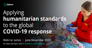 Le 11 mars 2020, l’OMS déclarait que la flambée avait atteint le stade de la pandémie. Sphère a organisé, entre avril et novembre 2020, une série de webinaires relatifs à la COVID-19 (enregistrements et présentations disponibles en anglais). Parmi les intervenant-e-s figuraient des expert-e-s de la santé et des membres de la communauté d’Asie, d’Afrique, d’Amérique latine, du Moyen-Orient et d’Europe. Enregistrements et présentations des webinaires relatifs à la COVID-19 |