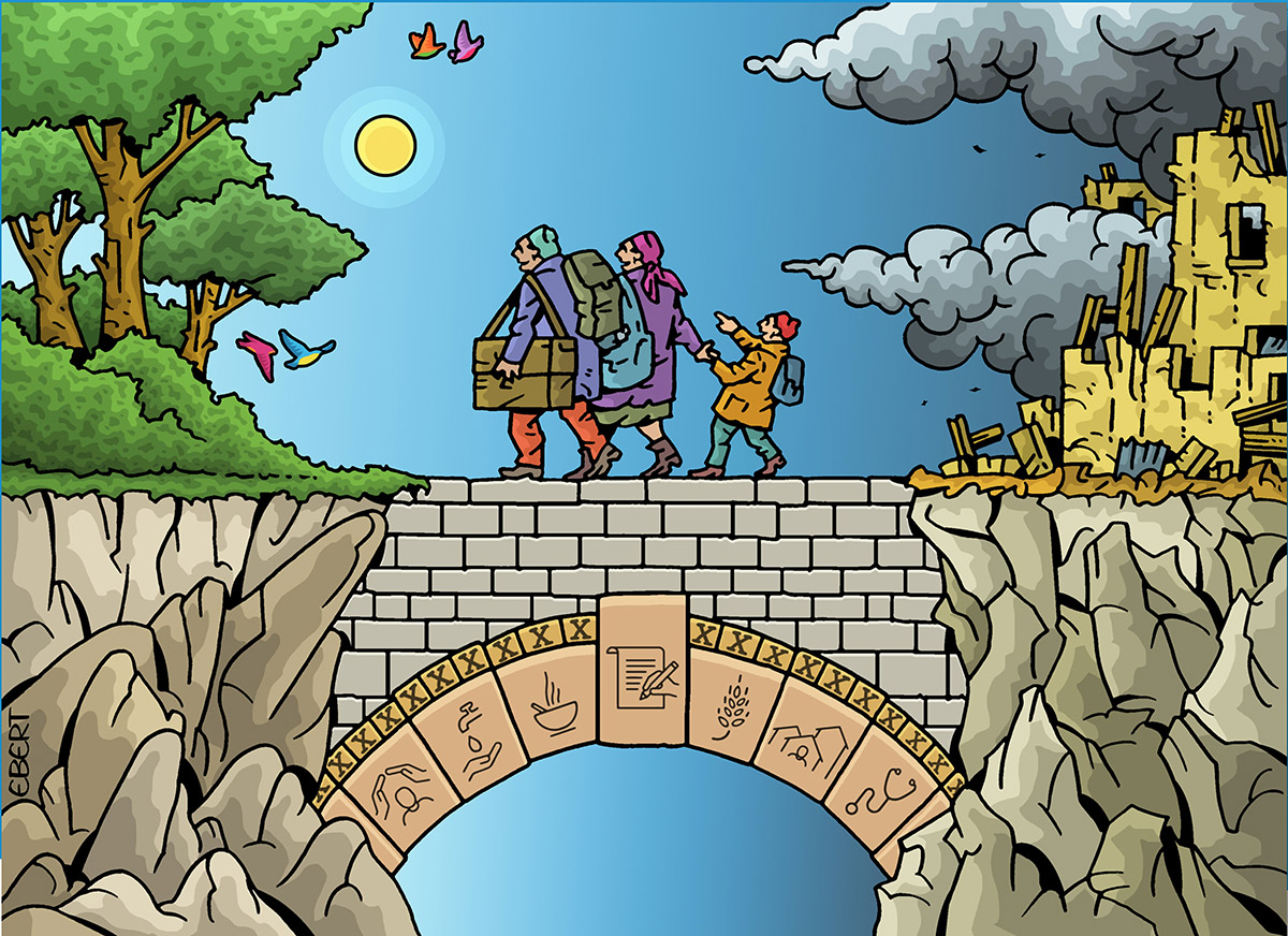 To produce the illustrations, Sphere partnered with artists from the Cartoon Movement and with the Centre for Education and Research in Humanitarian Action (CERAH).