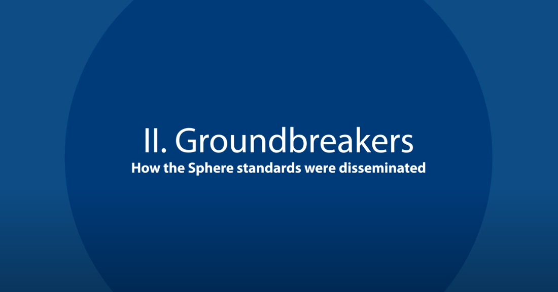“The Sphere Story” is a three-part video documentary on the origins, dissemination and impact of Sphere humanitarian principles and standards. It explores the drivers, the challenges in developing a common vision, and the impact that people experienced already in the early days, all from the perspective of the actors themselves. It is based on interviews with 11 people who played crucial roles at different stages of Sphere's development.